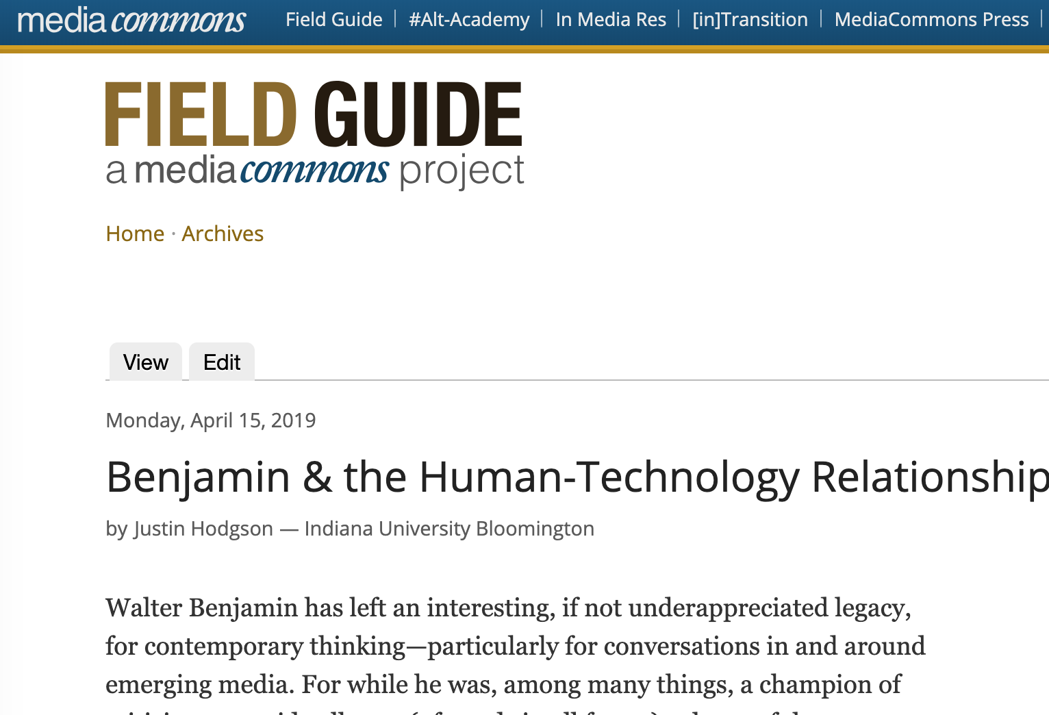 To read the full (short) piece, visit: http://mediacommons.org/fieldguide/content/benjamin-human-technology-relationship.